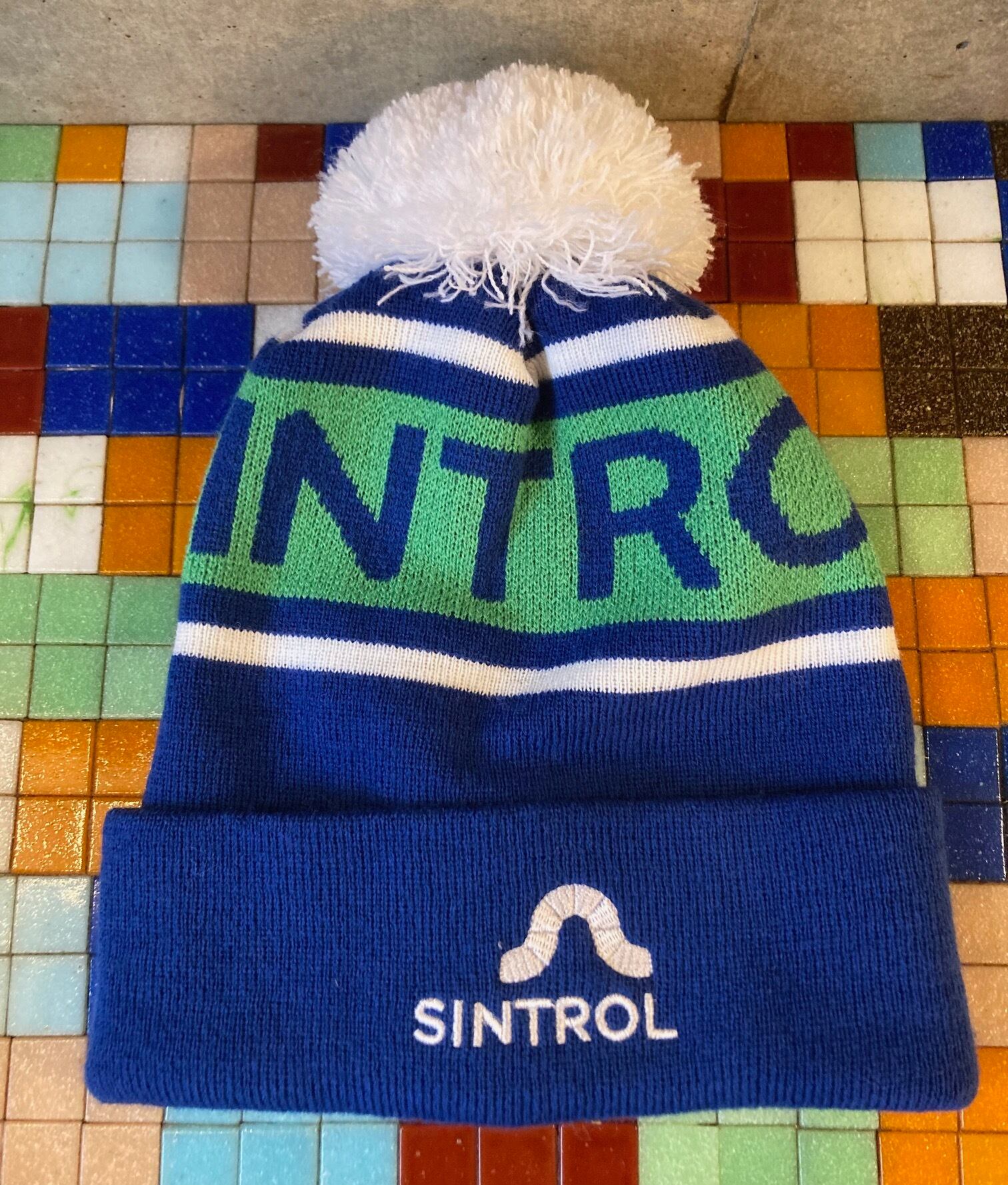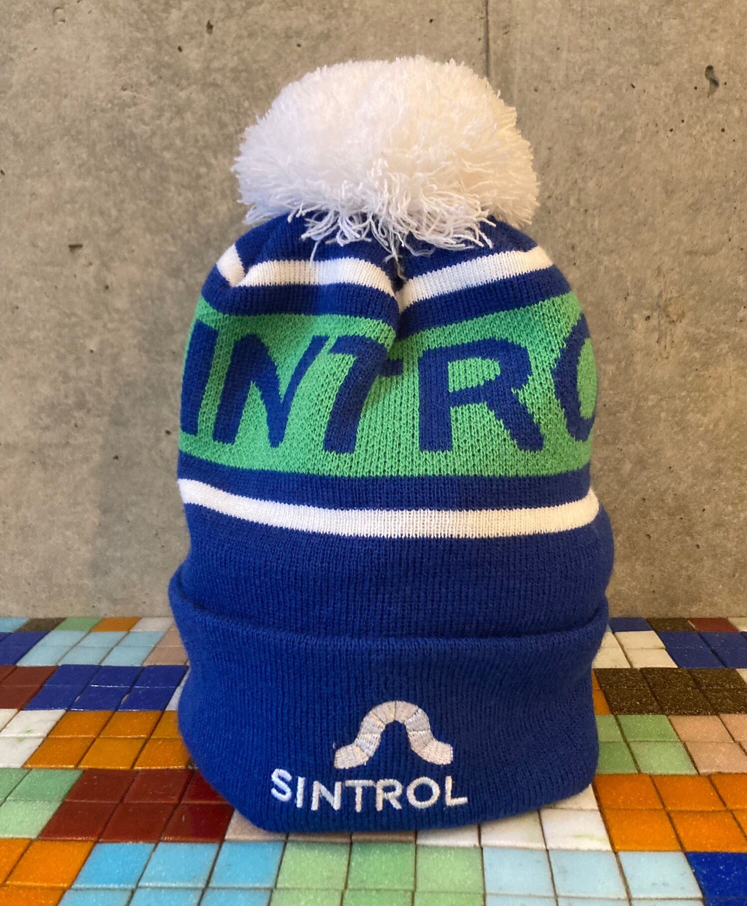ACRYLIC KNIT CAP BLUE/WHITE/GREEN